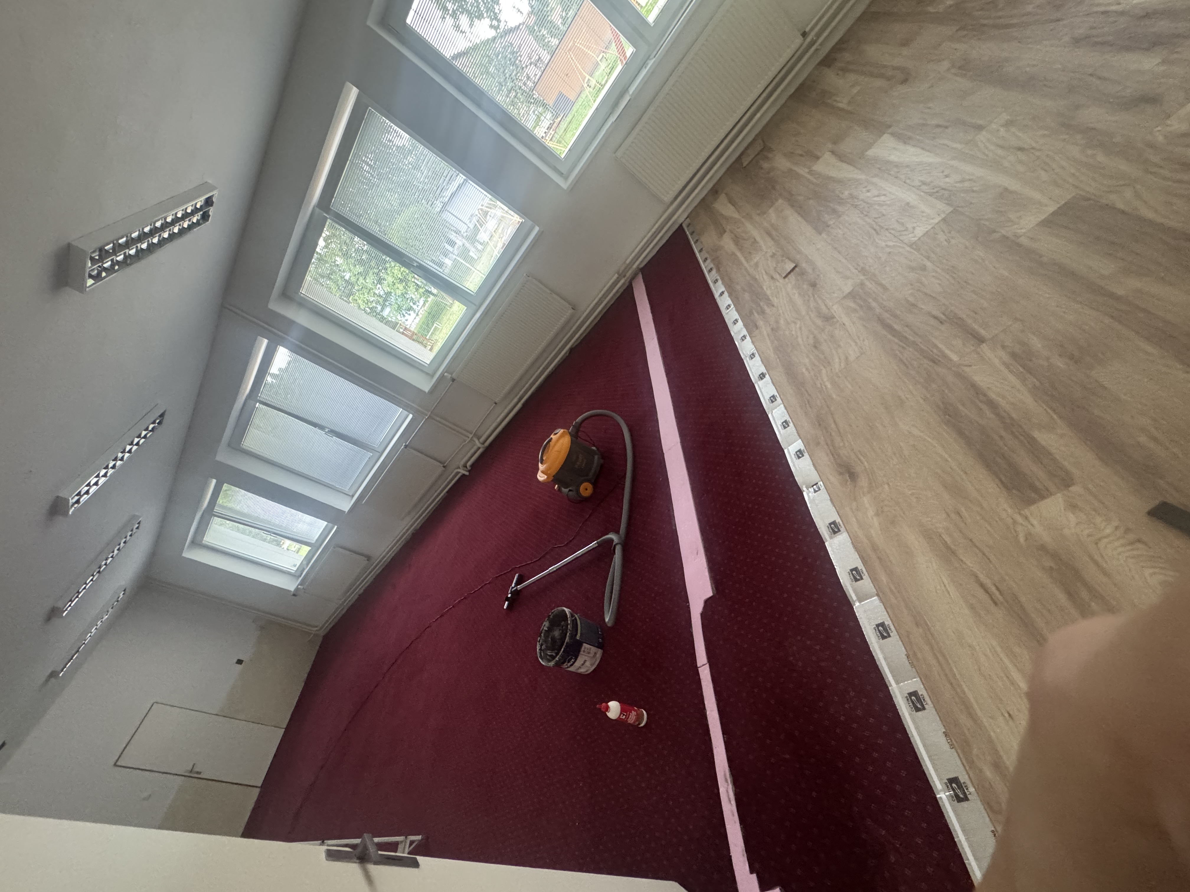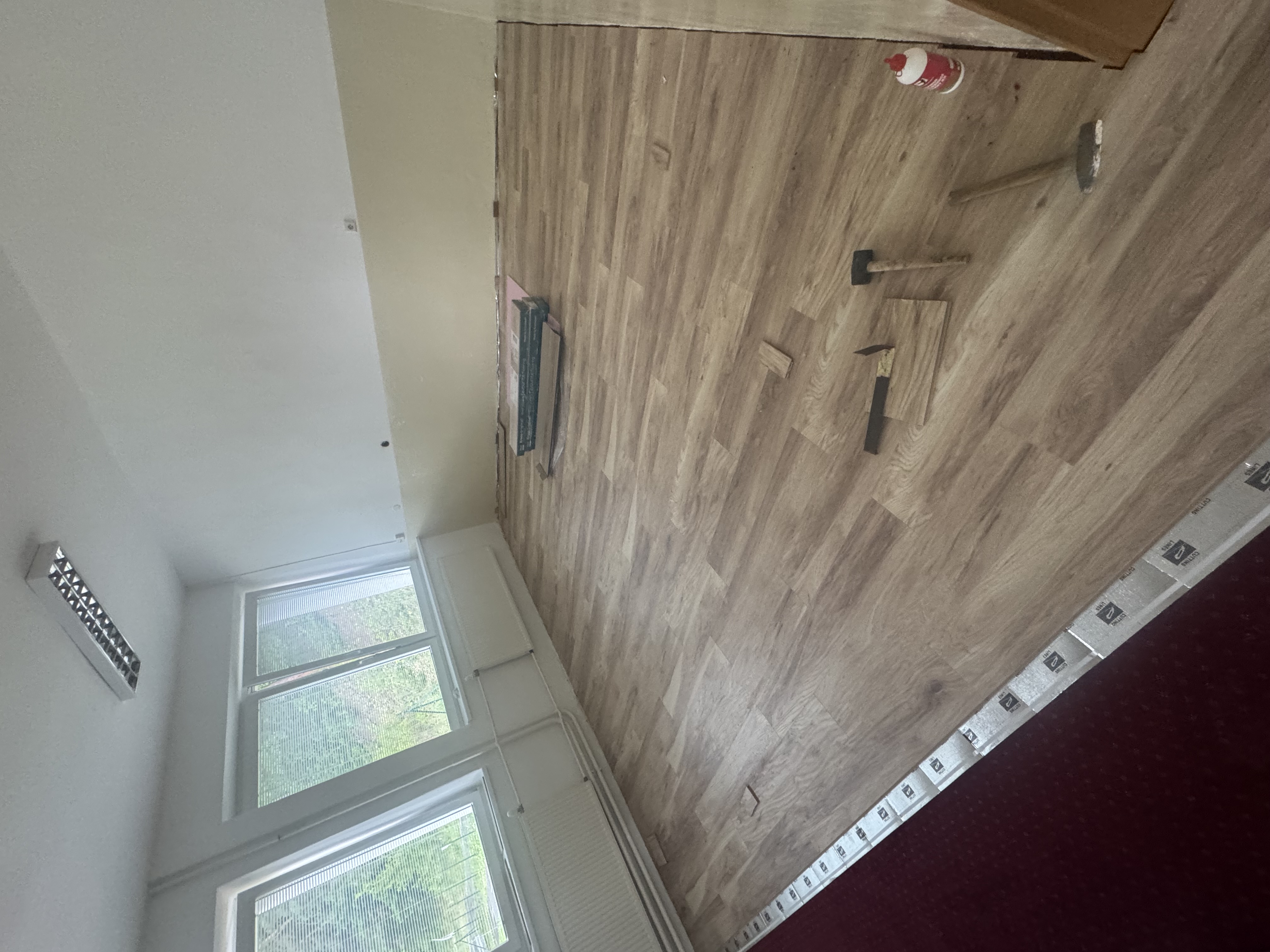 Pri týchto prácach bolo potrebné zbúrať priečku, zbíjať podlahu, položiť novú plávajúcu podlahu, ukladať dlažbu a obklad, namontovať nové umývadlá, batérie, osadiť el. ventilátor, namontovať sadrokartónové profily, olištovať podlahu, rezať dvere, vyspraviť steny a vymaľovať priestory.